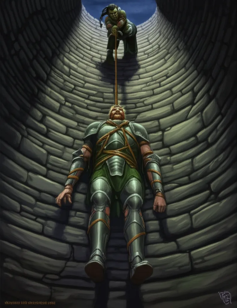 They tied Bancroft to the rope. Irulan climbed first, hauled SeaCrock up behind her, and then Bancroft — tied to the line, the stone wall sliding past his face, the rope doing the work his arms would have done if they were working. He went up like a sack of grain. It was not dignified. It was extremely effective.